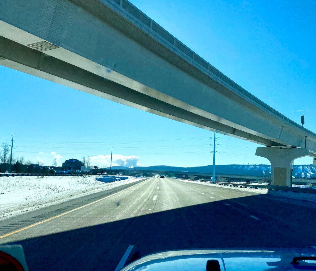 Three miles away from my destination, I drove under the overpasses. A January midday, below zero but a sunny day colored everything with a tinge of the truest, icy blue.