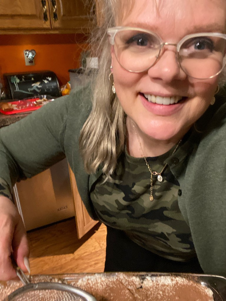 I assembled the confectionary dessert, dipping strips of sponge cake into espresso. These strips were layered alternatively with the sweetened cream and cheese. I sifted cocoa powder atop the final layer.