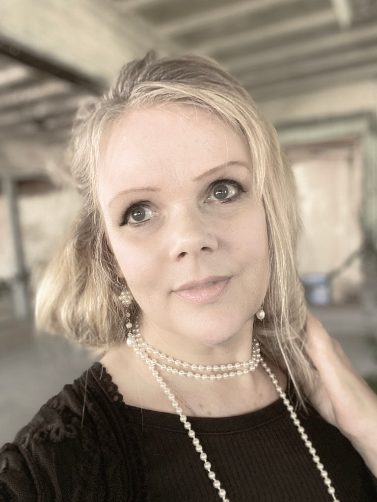 On a serious note, I feel myself turn into a new season of womanhood. Perhaps that change became startling apparent when I dressed for a historical event. The Matthias Building was one of hte buildings included on a history tour of local buildings. Since this year’s theme was the Roaring Twenties, it seemed a perfect opportunity to open up not only the building, but even myself. I dressed not overly flapperish, but attempted a pseudo-costume with pieces I already owned. I donned a black knit pencil skirt with a black knit top. Oh, I did purchase a black lace kimono accessory upon which I had my eye. A long faux pearl necklace completed the outfit. I attempted to slick my hair, then tuck under the ends into a roll. My great Aunt Mae’s hair pin completed my ‘do’.