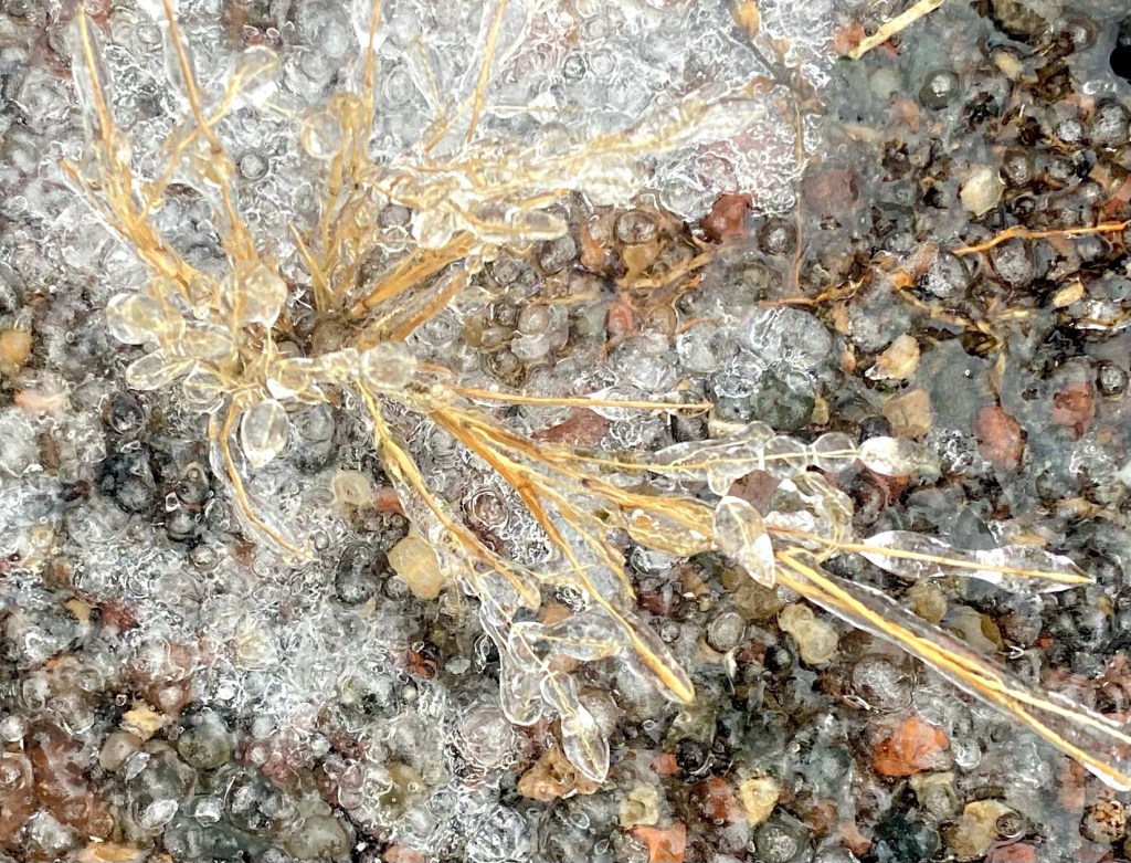 Rain awakens me the next morning. Thirty-two degrees Fahrenheit accompanied the precipitation. Hours of ice, sleet, rain and hail slicked every horizontal surface. My friend lends me tracker ice cleats for my boots.