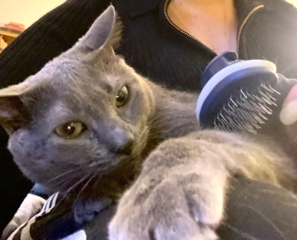 (I probably would not recommend ‘the couch approach’ as a grooming table, but my goal was a smooth yet thorough begin to grooming. Couch cleaning would come the next day!)